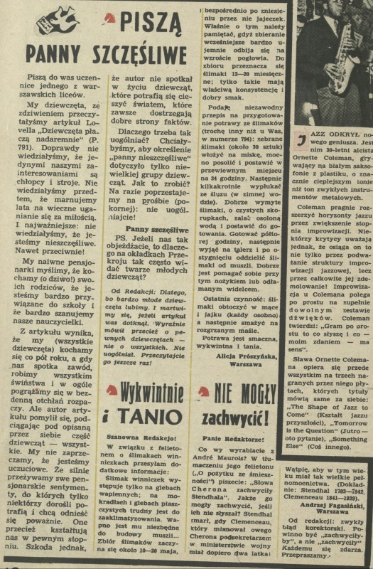 Archiwum / Listy do i od redakcji nr 798 (30/1960) 316/4173 Podziel się Tytuł Listy do i od redakcji Rubryka Listy do i od redakcji Artykuł z numeru 798 (30/1960) Data wydania 22 lipca 1960