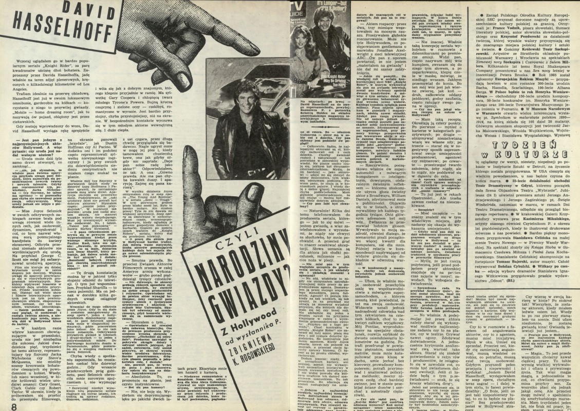 Archiwum / Wywiad nr 2067 (03/1985) 56/60 Podziel się Tytuł David Hasselhoff czyli narodziny gwiazdy? Autor Zbigniew K. Rogowski Kategoria Wywiad Artykuł z numeru 2067 (3/1985) Data wydania 20 stycznia 1985 Tagi Hollywod David Hasselhoff