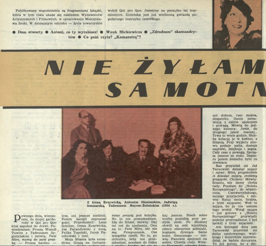 Archiwum / Artykuł nr 2067 (03/1985) 34/62 Podziel się Tytuł Nie żyłam samotnie Autor Mira Zimińska-Sygietyńska Kategoria Artykuł Artykuł z numeru 2067 (3/1985) Data wydania 20 stycznia 1985 Tagi skamandryci Mickiewicz