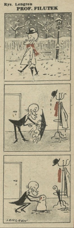 Archiwum / Profesor Filutek nr 300 (02/1951) 02/52 Podziel się Tytuł Prof. Filutek Autor Zbigniew Lengren Rubryka Profesor Filutek Artykuł z numeru 300 (2/1951) Data wydania 7 stycznia 1951 Tagi żart rysunkowy śnieg bałwan