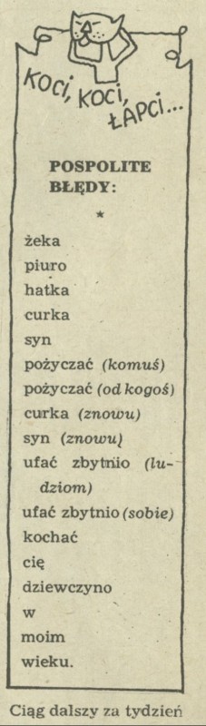 Archiwum / Koci, koci, łapci nr 865 (45/1961) 36069/123969 Podziel się Tytuł Koci, koci łapci Rubryka Koci, koci, łapci Artykuł z numeru 865 (45/1961) Data wydania 5 listopada 1961
