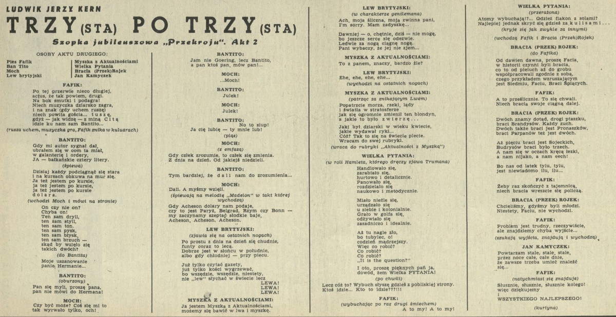 Archiwum / Proza nr 301 (03/1951) 49/2248 Podziel się Tytuł Trzy(sta) po trzy(sta) - Szopka jubileuszowa Autor Ludwik Jerzy Kern Kategoria Proza Artykuł z numeru 301 (3/1951) Data wydania 14 stycznia 1951 Tagi Fafik Bantito Myszka Kamyczek Moch