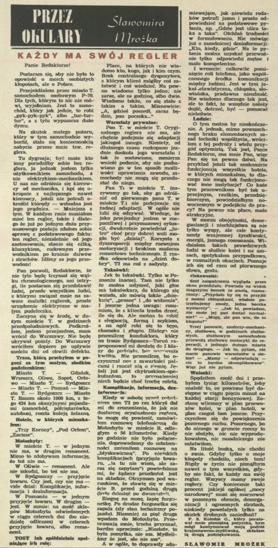 Archiwum / Przez okulary Sławomira Mrożka nr 848 (28/1961) 18/42 Podziel się Tytuł Każdy ma swój regler Autor Sławomir Mrożek Rubryka Przez okulary Sławomira Mrożka Artykuł z numeru 848 (28/1961) Prawa Diogenes Verlag AG Data wydania 9 lipca 1961 Tagi satyra absurd samochód