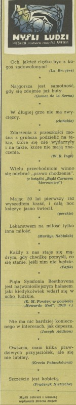 Archiwum / Myśli ludzi wielkich, średnich i psa Fafika nr 848 (28/1961) 297/562 Podziel się Tytuł Myśli ludzi wielkich, średnich oraz psa Fafika Autor Bracia Rojek Rubryka Myśli ludzi wielkich, średnich i psa Fafika Artykuł z numeru 848 (28/1961) Data wydania 9 lipca 1961 Tagi cytaty aforyzmy