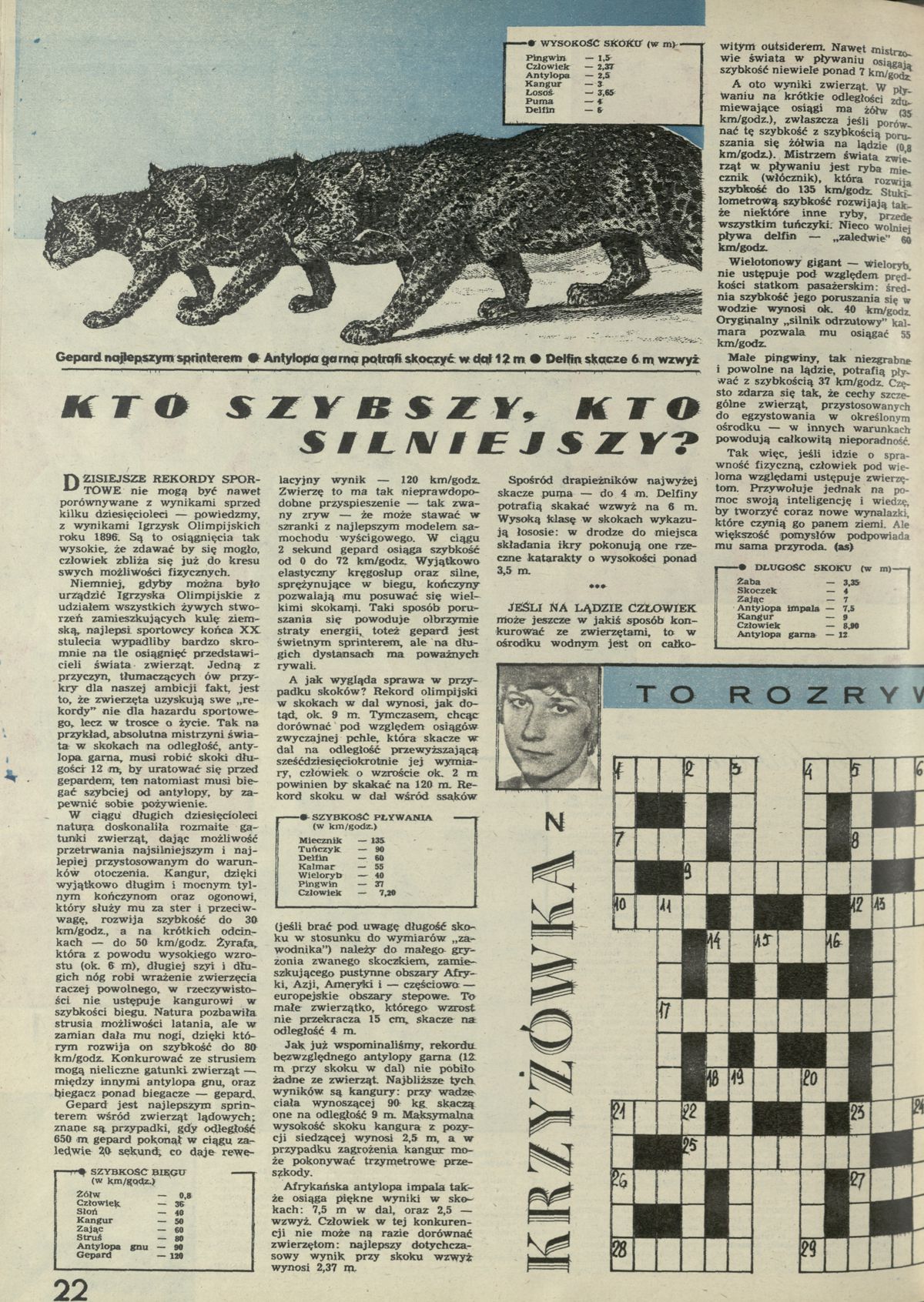 Archiwum / Nauka nr 2004 (45/1983) 10/23 Podziel się Tytuł Kto szybszy, kto silniejszy? Kategoria Nauka Artykuł z numeru 2004 (45/1983) Data wydania 6 listopada 1983 Tagi zwierzęta rekordy gepard antylopa skoki bieg