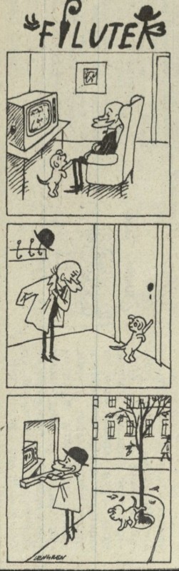 Archiwum / Profesor Filutek nr 2004 (45/1983) 07/48 Podziel się Tytuł Prof. Filutek Autor Zbigniew Lengren Rubryka Profesor Filutek Artykuł z numeru 2004 (45/1983) Data wydania 6 listopada 1983 Tagi żart rysunkowy pies Filuś spacer telewizja