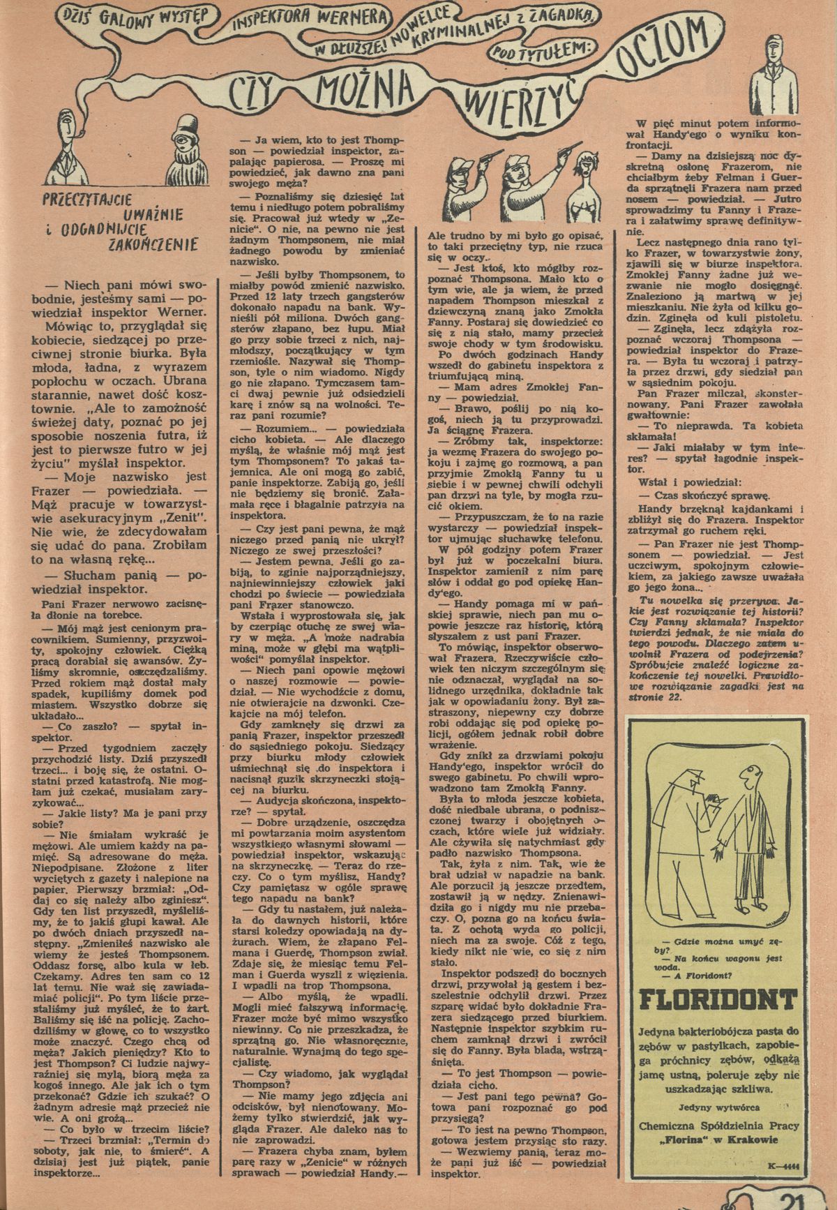 Archiwum / Zagadka kryminalna nr 803 (35/1960) 17/46 Podziel się Tytuł Czy można wierzyć oczom Rubryka Zagadka kryminalna Artykuł z numeru 803 (35/1960) Data wydania 28 sierpnia 1960