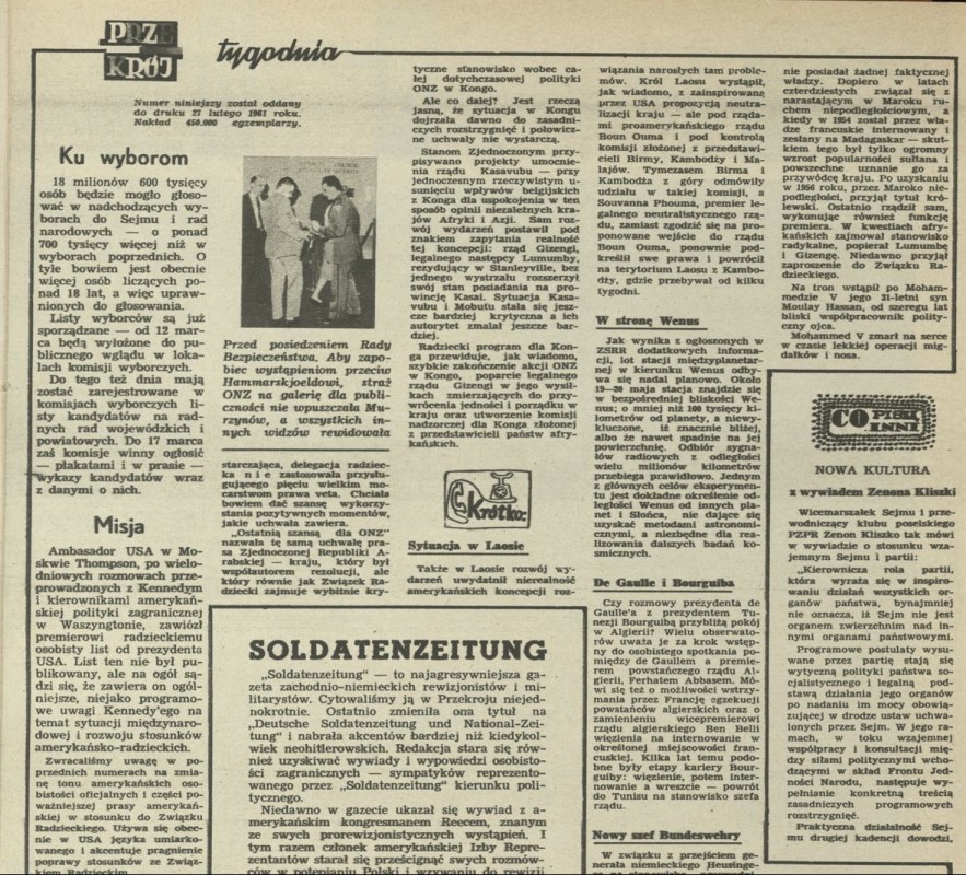 Archiwum / Przekrój tygodnia nr 830 (10/1961) 34286/123969 Podziel się Tytuł Przekrój tygodnia Rubryka Przekrój tygodnia Artykuł z numeru 830 (10/1961) Data wydania 5 marca 1961