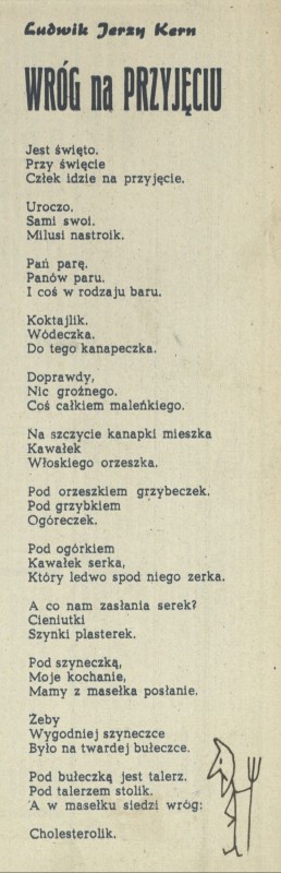 Archiwum / Rozmaitości [old] nr 830 (10/1961) 09/40 Podziel się Tytuł Wróg na przyjęciu Autor Ludwik Jerzy Kern Rubryka Rozmaitości [old] Artykuł z numeru 830 (10/1961) Data wydania 5 marca 1961