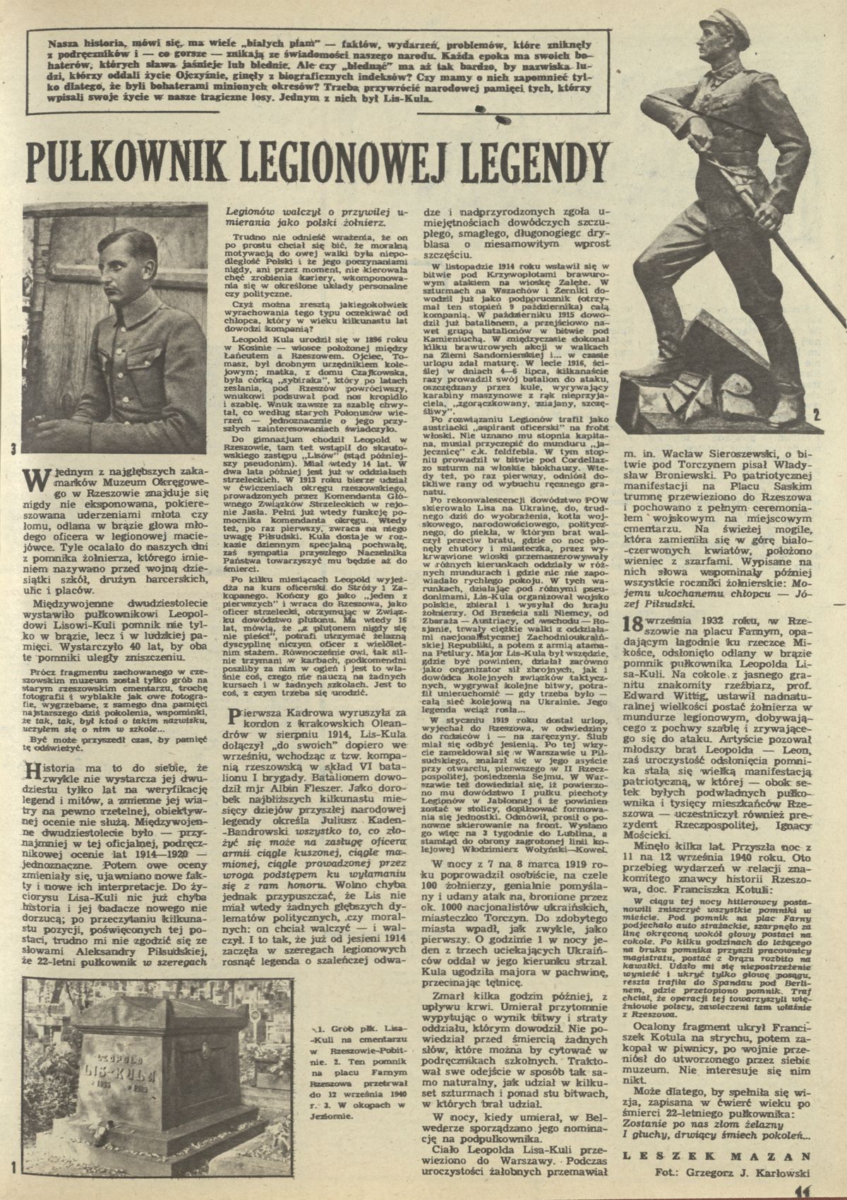 Archiwum / Nauka nr 1910 (46/1981) 17/25 Podziel się Tytuł Pułkownik Legionowej Legendy Autor Leszek Mazan Kategoria Nauka Artykuł z numeru 1910 (46/1981) Data wydania 15 listopada 1981 Tagi Muzeum Okręgowe w Rzeszowie Leopold Lis-Kula