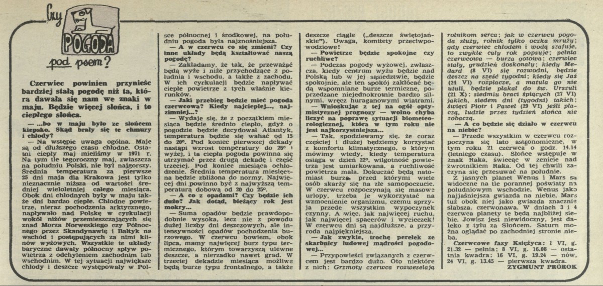 Archiwum / Czy pogoda pod psem? nr 1678 (23/1977) 214/222 Podziel się Tytuł Czy pogoda pod psem? Autor Zygmunt Prorok Rubryka Czy pogoda pod psem? Artykuł z numeru 1678 (23/1977) Data wydania 5 czerwca 1977