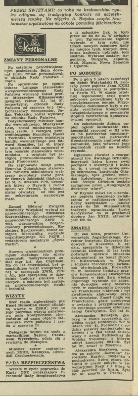 Archiwum / Krótko nr specjalny 51/1965 01/30 Podziel się Tytuł Krótko Rubryka Krótko Artykuł z numeru nr specjalny 51/1965 Data wydania 20 grudnia 1965