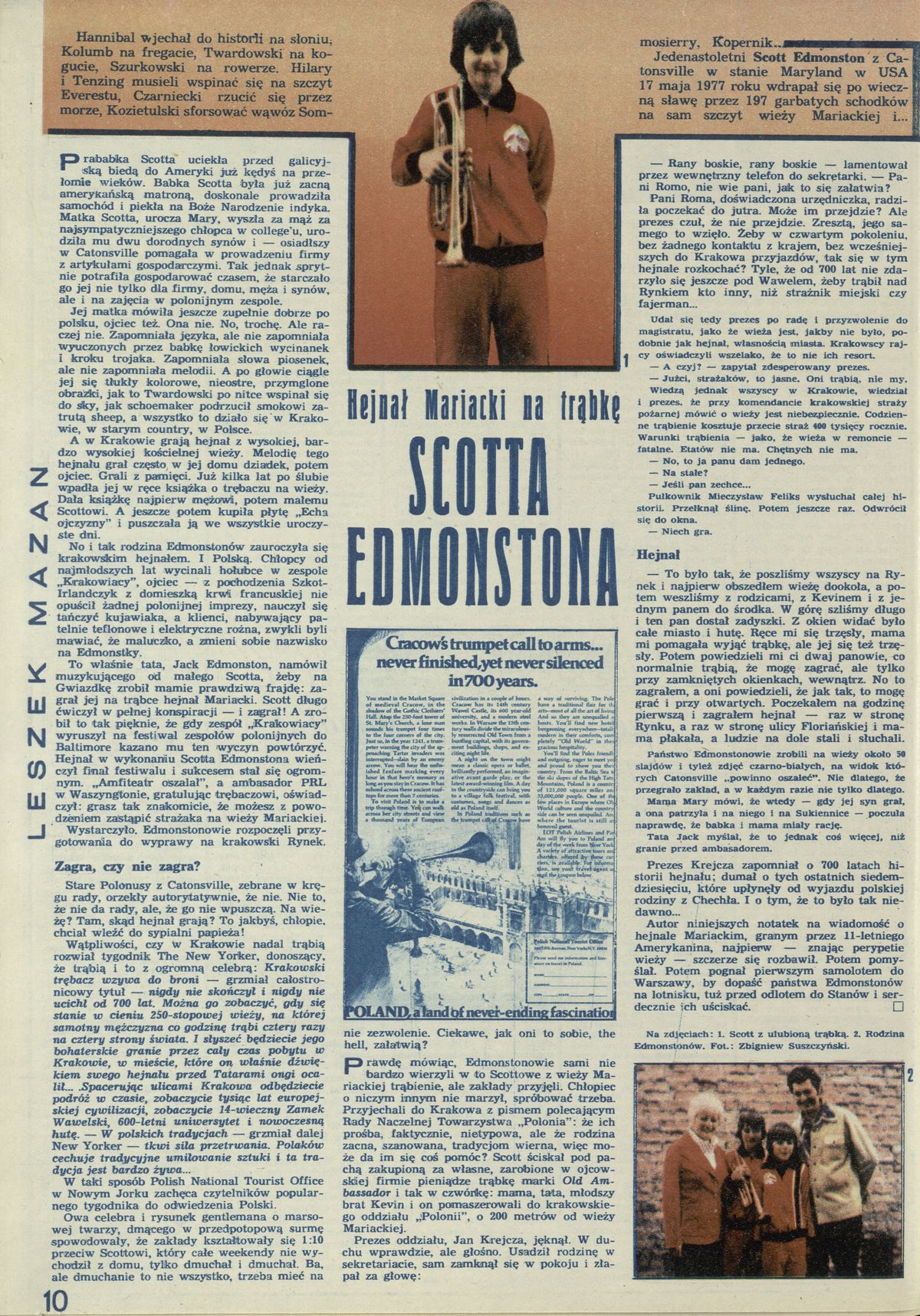 Archiwum / Artykuł nr 1678 (23/1977) 45/108 Podziel się Tytuł Hejnał Mariacki na trąbkę Scotta Edmonstona Autor Adam Macedoński Kategoria Artykuł Artykuł z numeru 1678 (23/1977) Data wydania 5 czerwca 1977 Tagi Muzyka Jazz