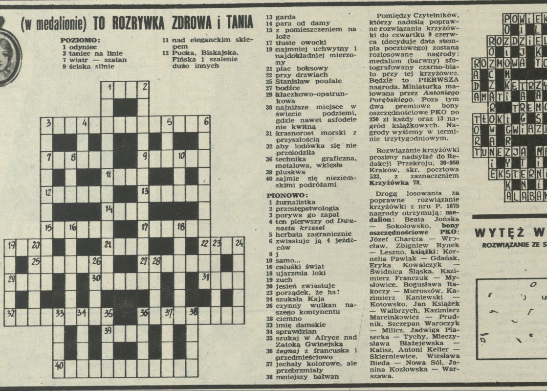 Archiwum / Krzyżówka z kociakiem nr 1678 (23/1977) 23/49 Podziel się Tytuł Krzyżówka z kociakiem Rubryka Krzyżówka z kociakiem Artykuł z numeru 1678 (23/1977) Data wydania 5 czerwca 1977 Tagi krzyżówka