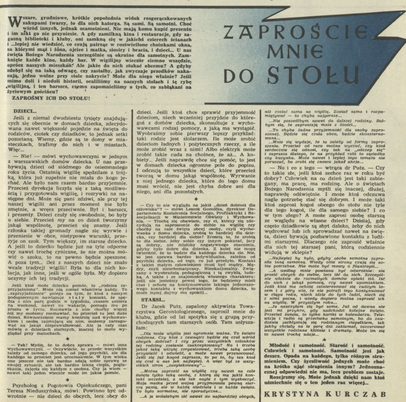 Archiwum / Artykuł nr 2009 (50/1983) 39/49 Podziel się Tytuł Zaproście mnie do stołu Autor Krystyna Kurczab Kategoria Artykuł Artykuł z numeru 2009 (50/1983) Data wydania 11 grudnia 1983 Tagi święta święta bożego narodzenia wiglia