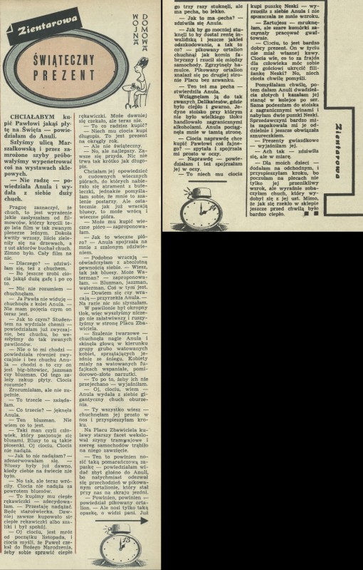 Archiwum / Felieton nr specjalny 51/1965 06/123 Podziel się Tytuł Świąteczny prezent Autor Maria Zientarowa Kategoria Felieton Artykuł z numeru nr specjalny 51/1965 Data wydania 20 grudnia 1965