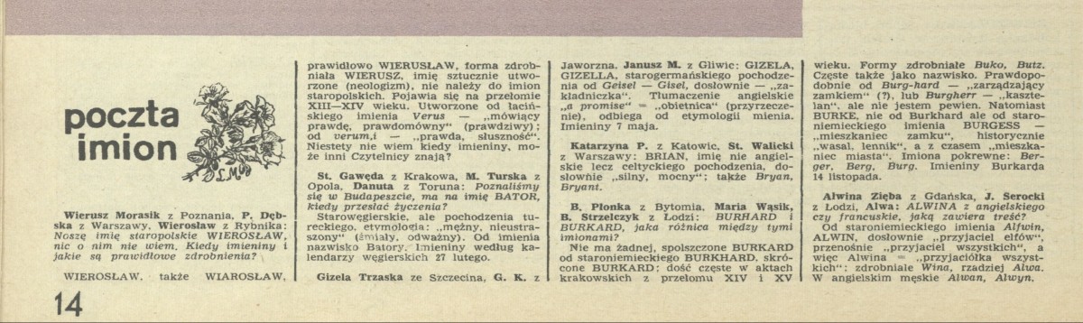 Archiwum / Poczta imion nr 1493 (46/1973) 93/477 Podziel się Tytuł Poczta imion Rubryka Poczta imion Artykuł z numeru 1493 (46/1973) Data wydania 18 listopada 1973