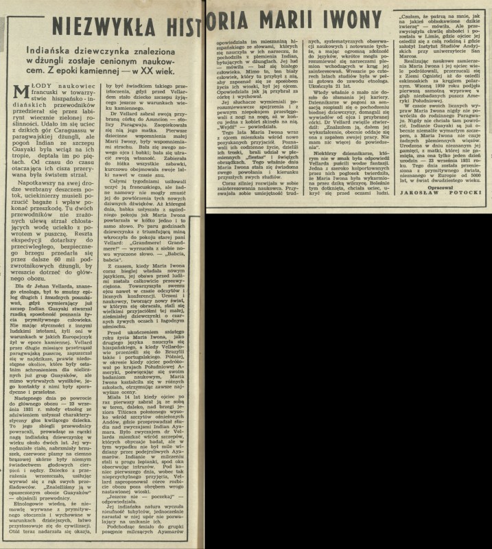 Archiwum / Artykuł nr 814 (46/1960) 6/9 Podziel się Tytuł Niezwykła historia Marii Iwony Autor Jarosław Potocki Kategoria Artykuł Artykuł z numeru 814 (46/1960) Data wydania 13 listopada 1960 Tagi nauka Indianie