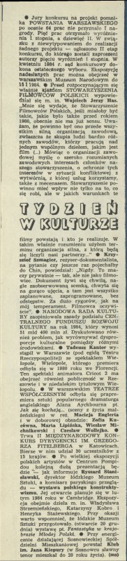 Archiwum / Tydzień w kulturze nr 2009 (50/1983) 82606/123969 Podziel się Tytuł Tydzień w kulturze Autor ms Rubryka Tydzień w kulturze Artykuł z numeru 2009 (50/1983) Data wydania 11 grudnia 1983 Tagi konkurs na projekt pomnika Powstania Warszawskiego zjazd Stowarzyszenia Filmowców Polskich Wojciech Jerzy Has