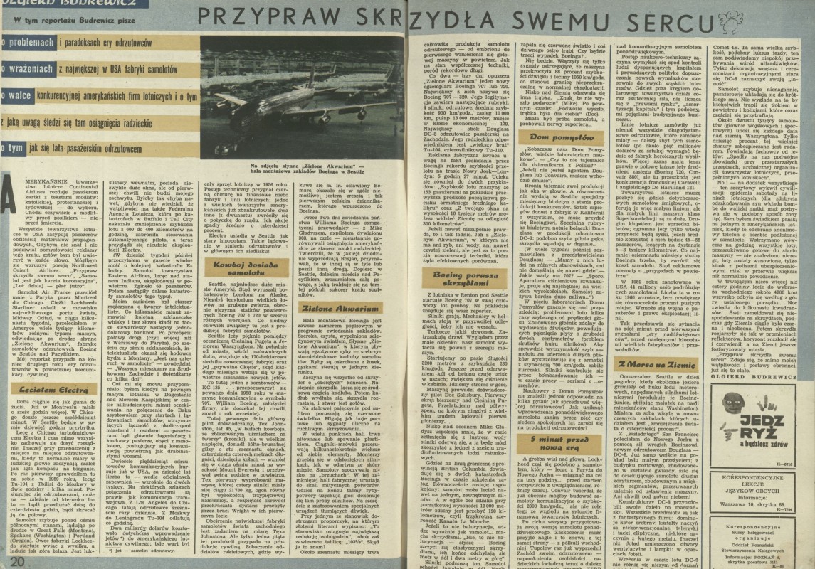 Archiwum / Artykuł nr 814 (46/1960) 08/151 Podziel się Tytuł Przypraw skrzydła swemu sercu Autor Olgierd Budrewicz Kategoria Artykuł Artykuł z numeru 814 (46/1960) Data wydania 13 listopada 1960 Tagi lotnictwo