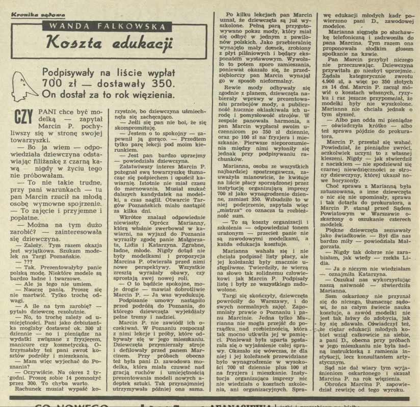 Archiwum / Kronika sądowa nr 814 (46/1960) 88/844 Podziel się Tytuł Koszta edukacji Autor Wanda Falkowska Rubryka Kronika sądowa Artykuł z numeru 814 (46/1960) Data wydania 13 listopada 1960 Tagi prawo
