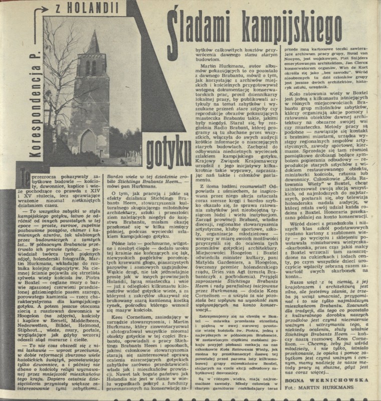 Archiwum / korespondencja własna "Przekroju" nr 1914 (50/1981) 78815/123969 Podziel się Tytuł Śladami kampijskiego gotyku Autor Bo Wer Rubryka korespondencja własna "Przekroju" Artykuł z numeru 1914 (50/1981) Data wydania 13 grudnia 1981 Tagi gotyk Martin Hurkmans