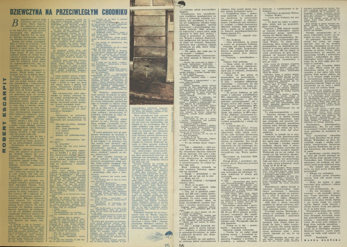 Archiwum / Opowiadanie nr 1613 (10/1976) 64/223 Podziel się Tytuł Dziewczyna na przeciwległym chodniku Autor Robert Escarpit Kategoria Opowiadanie Artykuł z numeru 1613 (10/1976) Data wydania 7 marca 1976
