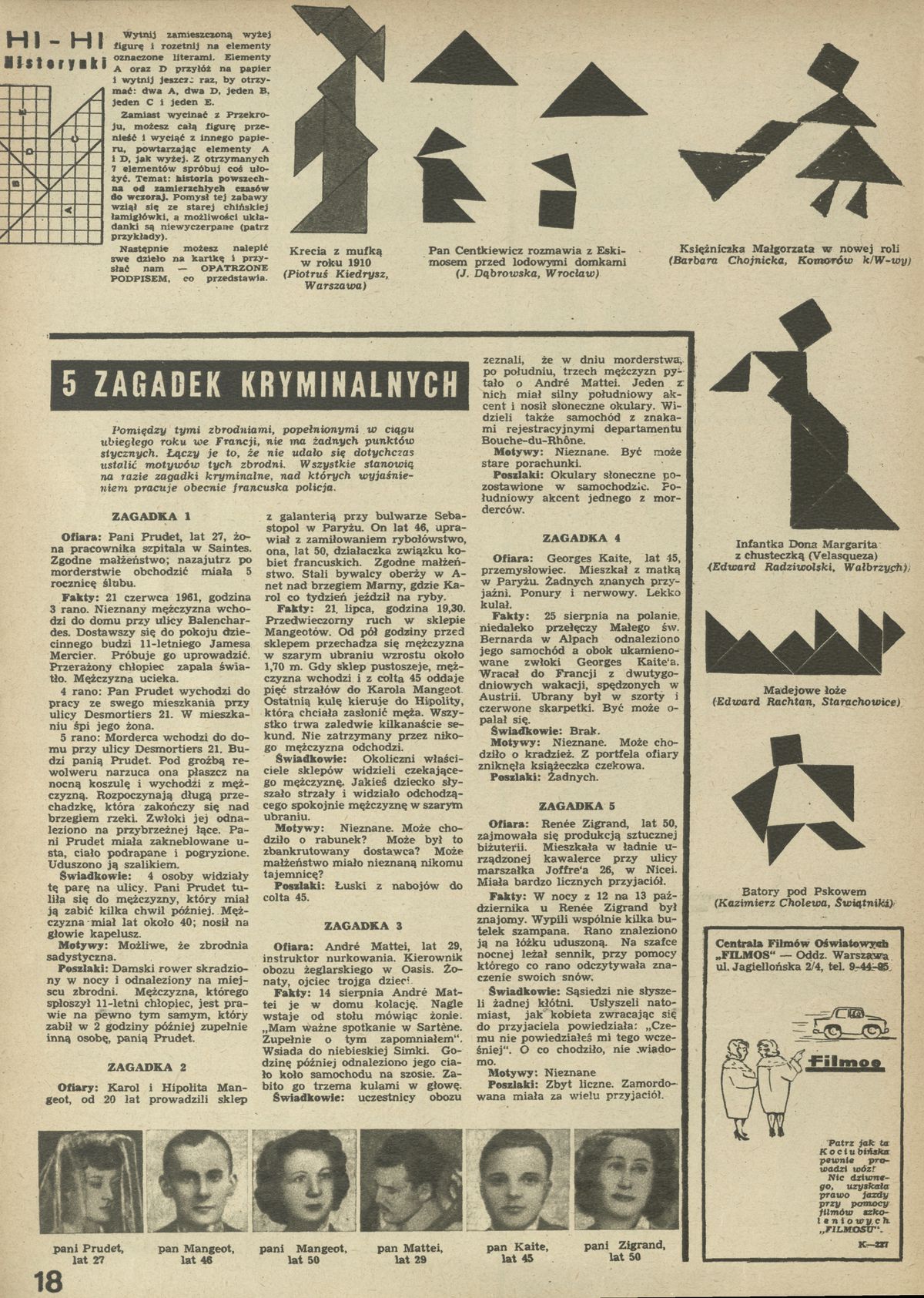 Archiwum / Zagadka kryminalna nr 876 (03/1962) 154/606 Podziel się Tytuł 5 zagadek kryminalnych Rubryka Zagadka kryminalna Artykuł z numeru 876 (3/1962) Data wydania 21 stycznia 1962