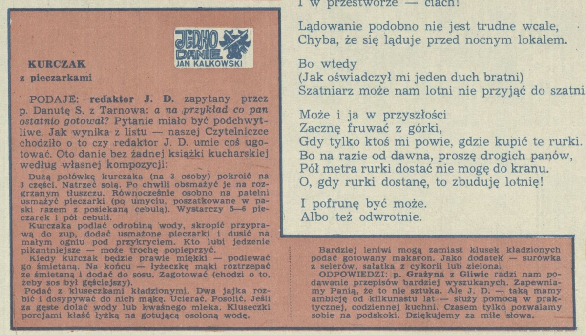Archiwum / Jedno danie nr 1613 (10/1976) 65986/121061 Podziel się Tytuł Kurczak z pieczarkami Autor Jan Kalkowski Rubryka Jedno danie Artykuł z numeru 1613 (10/1976) Data wydania 7 marca 1976