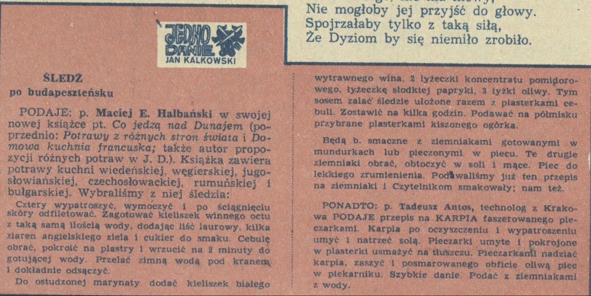 Archiwum / Jedno danie nr 1719 (12/1978) 72105/123969 Podziel się Tytuł Śledź po budapeszteńsku Autor Jan Kalkowski Rubryka Jedno danie Artykuł z numeru 1719 (12/1978) Data wydania 19 marca 1978