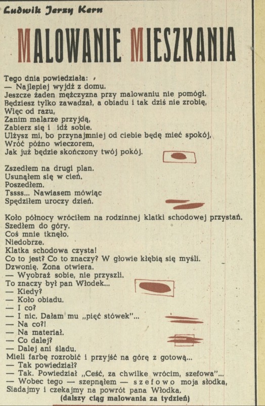 Archiwum / Rozmaitości [old] nr 848 (28/1961) 2/5 Podziel się Tytuł Malowanie mieszkania Autor Ludwik Jerzy Kern Rubryka Rozmaitości [old] Artykuł z numeru 848 (28/1961) Data wydania 9 lipca 1961