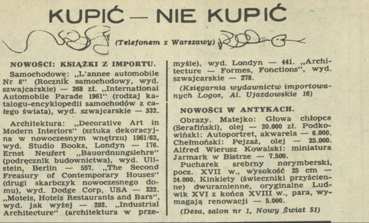 Archiwum / Kupić - nie kupić nr 862 (42/1961) 35912/123969 Podziel się Tytuł Kupić-nie kupić Rubryka Kupić - nie kupić Artykuł z numeru 862 (42/1961) Data wydania 15 października 1961