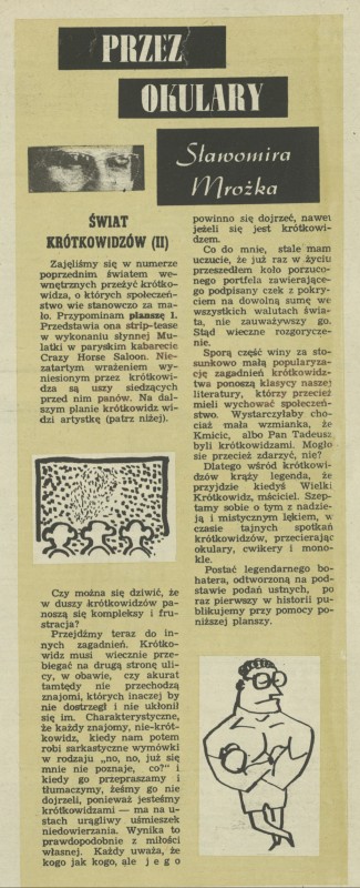 Archiwum / Przez okulary Sławomira Mrożka nr 863 (43/1961) 252/1900 Podziel się Tytuł Świat krótkowidzów (2) Autor Sławomir Mrożek Rubryka Przez okulary Sławomira Mrożka Artykuł z numeru 863 (43/1961) Prawa Diogenes Verlag AG Data wydania 22 października 1961 Tagi satyra absurd żart rysunkowy plansza