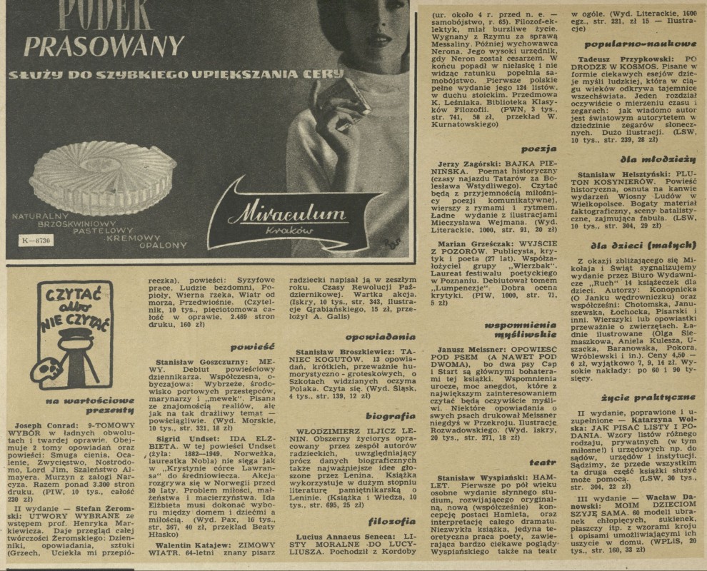 Archiwum / Czytać albo nie czytać? nr 868 (48/1961) 85/481 Podziel się Tytuł Czytać albo nie czytać? Rubryka Czytać albo nie czytać? Artykuł z numeru 868 (48/1961) Data wydania 26 listopada 1961