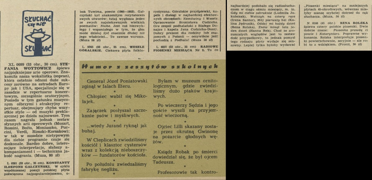 Archiwum / Kultura nr 868 (48/1961) 369/2233 Podziel się Tytuł Słuchać czy nie słuchać Kategoria Kultura Artykuł z numeru 868 (48/1961) Data wydania 26 listopada 1961