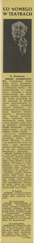 Archiwum / Teatr nr 837 (17/1961) 614/1291 Podziel się Tytuł Co nowego w teatrach? Autor Rom Rubryka Teatr Artykuł z numeru 837 (17/1961) Data wydania 23 kwietnia 1961