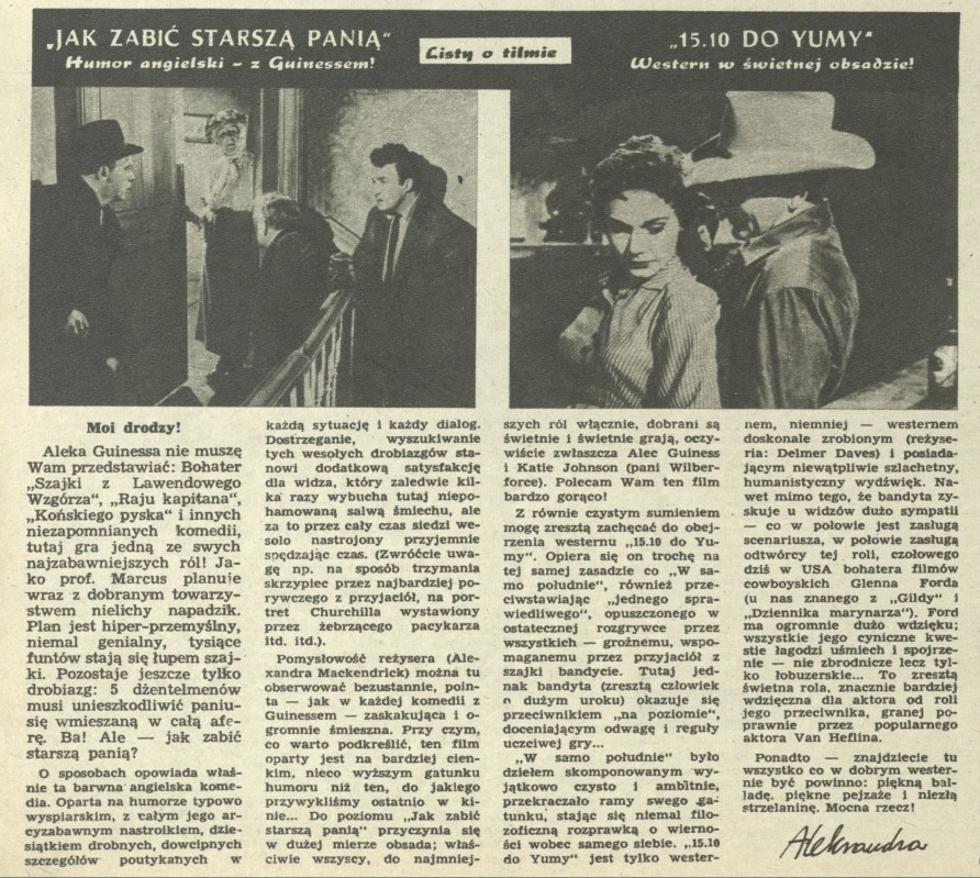 Archiwum / Listy o filmie nr 841 (21/1961) 207/1624 Podziel się Tytuł Jak zabić starszą panią, 15.10 do yumy Autor Aleksandra Rubryka Listy o filmie Artykuł z numeru 841 (21/1961) Data wydania 21 maja 1961