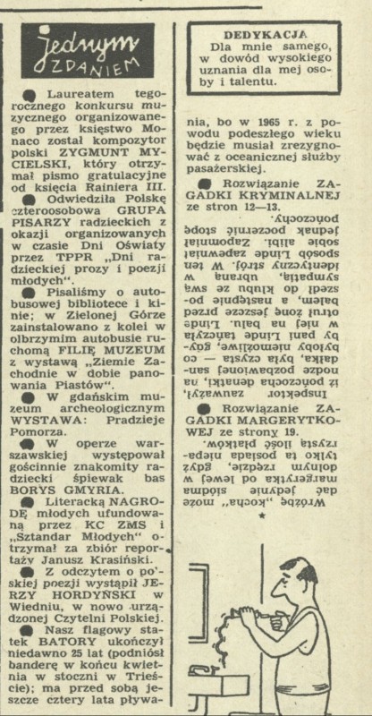 Archiwum / Jednym zdaniem nr 841 (21/1961) 73/417 Podziel się Tytuł Jednym zdaniem Rubryka Jednym zdaniem Artykuł z numeru 841 (21/1961) Data wydania 21 maja 1961