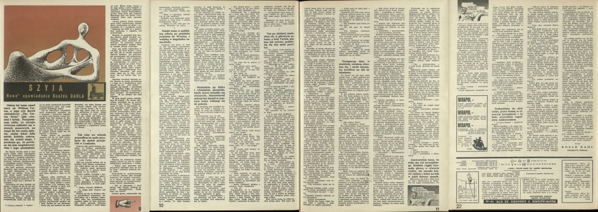 Archiwum / Opowiadanie nr 853 (33/1961) 256/1298 Podziel się Tytuł Szyja Autor Roald Dahl Kategoria Opowiadanie Artykuł z numeru 853 (33/1961) Data wydania 13 sierpnia 1961