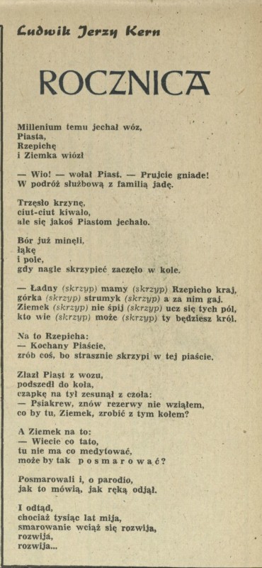Archiwum / Poezja nr 779 (11/1960) 29/652 Podziel się Tytuł Rocznica Autor Ludwik Jerzy Kern Kategoria Poezja Artykuł z numeru 779 (11/1960) Data wydania 13 marca 1960