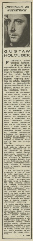 Archiwum / Astrologia dla wszystkich nr 772 (04/1960) 20/1825 Podziel się Tytuł Gustaw Holoubek Autor Ryszard Lassota Rubryka Astrologia dla wszystkich Artykuł z numeru 772 (4/1960) Data wydania 24 stycznia 1960 Tagi aktor gwiazdy filmowe kino