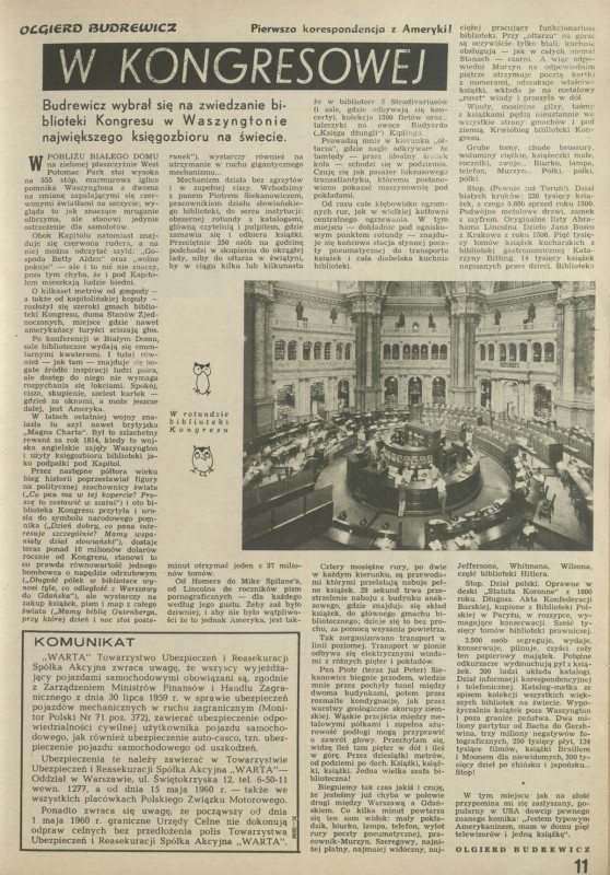 Archiwum / korespondencja własna "Przekroju" nr 790 (22/1960) 460/2302 Podziel się Tytuł W Kongresowej Autor Olgierd Budrewicz Rubryka korespondencja własna "Przekroju" Artykuł z numeru 790 (22/1960) Data wydania 29 maja 1960 Tagi biblioteka Kongresu w Waszyngtonie USA Ameryka