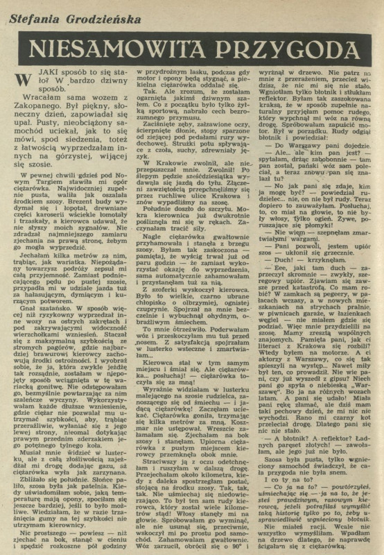 Archiwum / Okładki Przekroju nr 790 (22/1960) 05/123 Podziel się Tytuł Niesamowita przygoda Autor Stefania Grodzieńska Rubryka Okładki Przekroju Artykuł z numeru 790 (22/1960) Data wydania 29 maja 1960 Tagi samochód wypadek