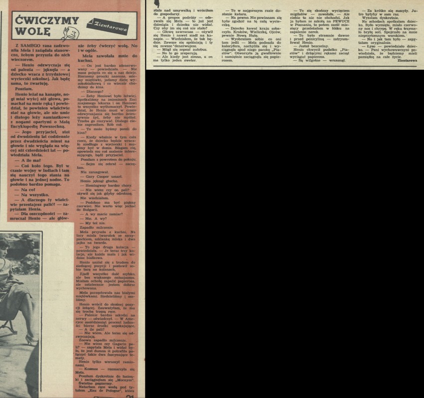 Archiwum / Felieton nr 842 (22/1961) 16/29 Podziel się Tytuł Ćwiczymy wolę Autor Maria Zientarowa Kategoria Felieton Artykuł z numeru 842 (22/1961) Data wydania 28 maja 1961