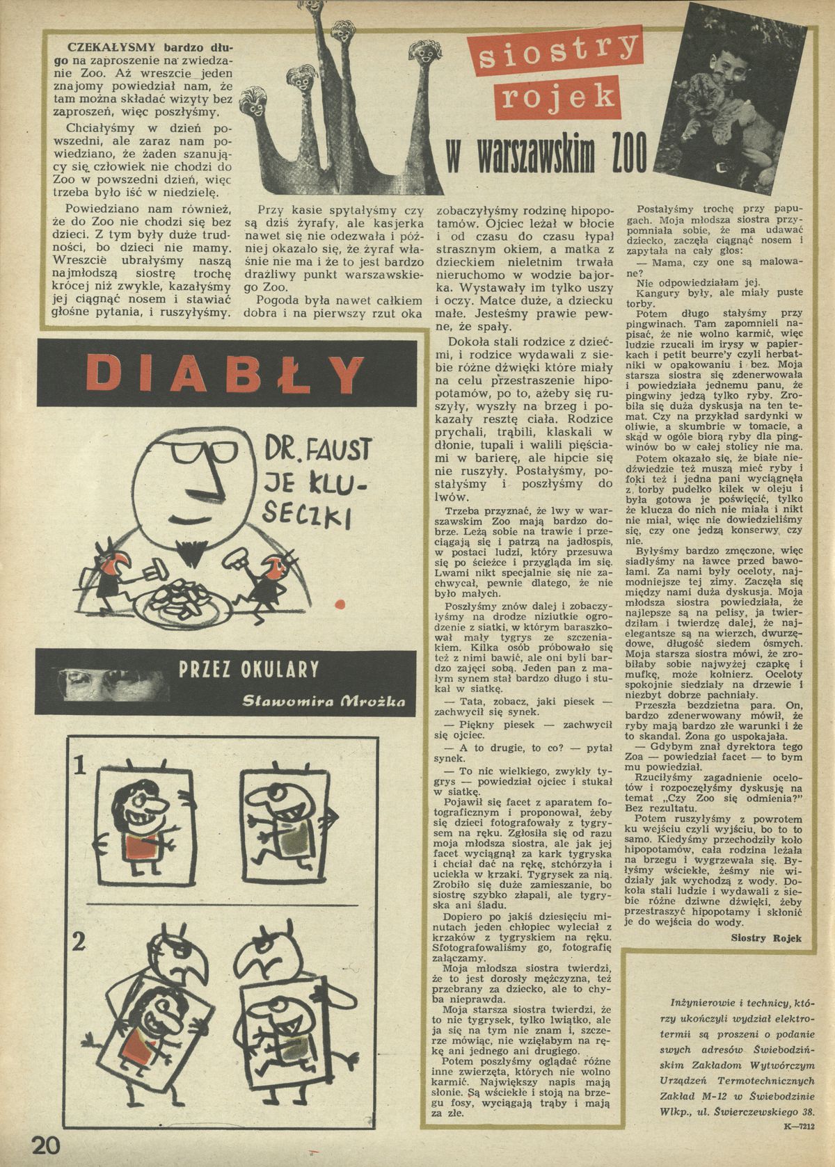 Archiwum / Relacja nr 914 (41/1962) 10/21 Podziel się Tytuł W warszawskim zoo Autor Siostry Rojek Kategoria Relacja Artykuł z numeru 914 (41/1962) Data wydania 14 października 1962