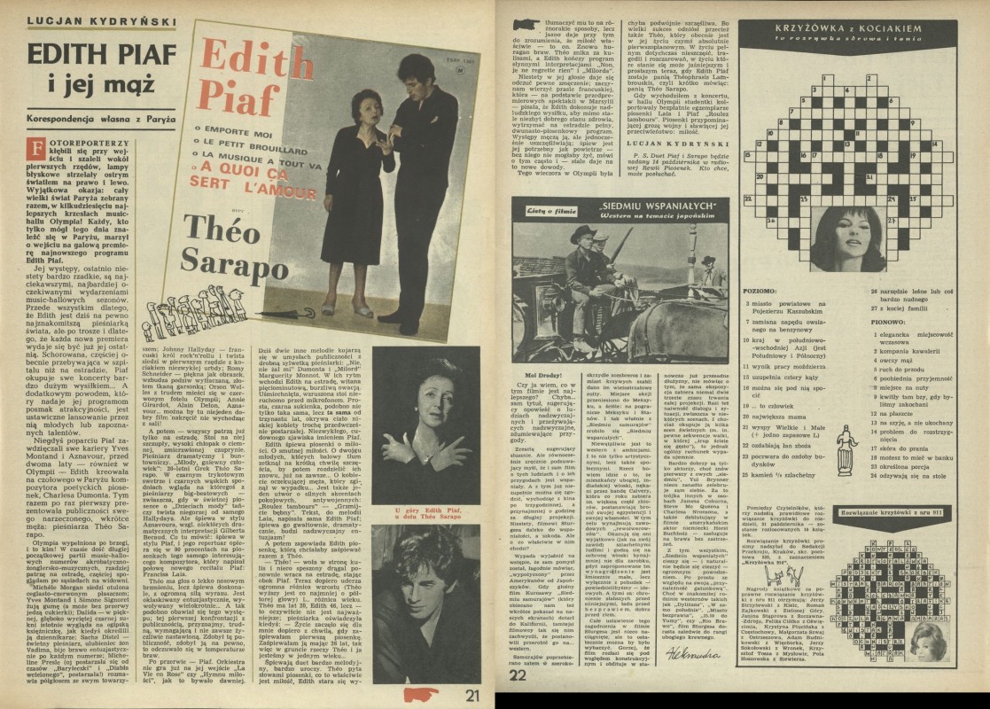 Archiwum / korespondencja własna "Przekroju" nr 914 (41/1962) 103/697 Podziel się Tytuł Edith Piaf i jej mąż Autor Lucjan Kydryński Rubryka korespondencja własna "Przekroju" Artykuł z numeru 914 (41/1962) Data wydania 14 października 1962