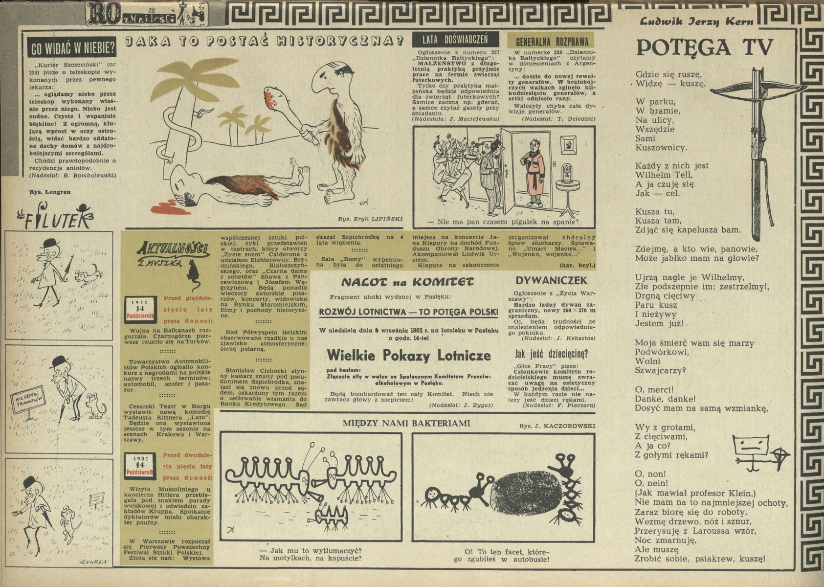 Archiwum / Rozmaitości [old] nr 914 (41/1962) 38341/123969 Podziel się Tytuł Potęga TV Autor Ludwik Jerzy Kern Rubryka Rozmaitości [old] Artykuł z numeru 914 (41/1962) Data wydania 14 października 1962
