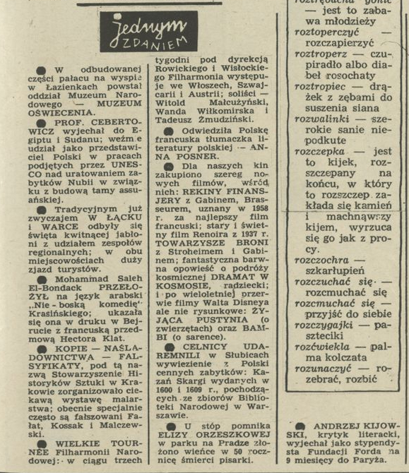 Archiwum / Jednym zdaniem nr 790 (22/1960) 32498/123969 Podziel się Tytuł Jednym zdaniem Rubryka Jednym zdaniem Artykuł z numeru 790 (22/1960) Data wydania 29 maja 1960