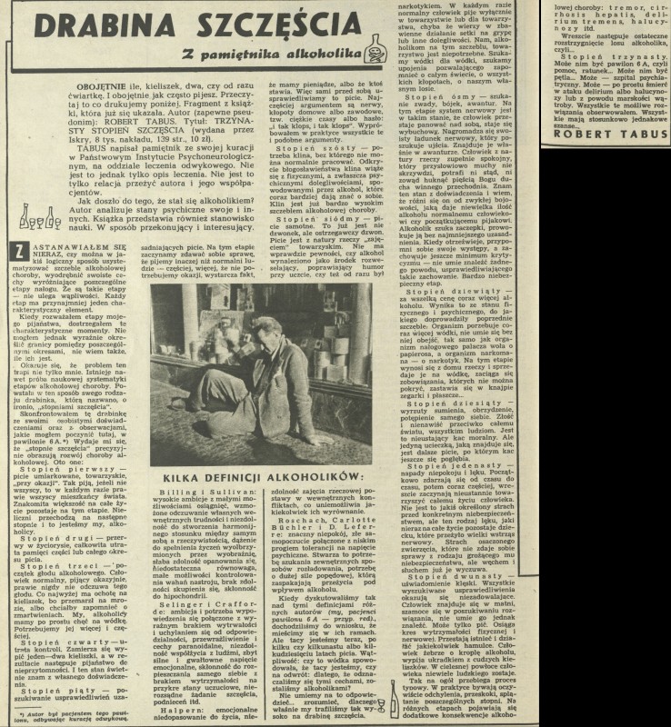 Archiwum / Artykuł nr 852 (32/1961) 174/592 Podziel się Tytuł Drabina szczęścia. Z pamiętnika alkoholika Autor Robert Tabus Kategoria Artykuł Artykuł z numeru 852 (32/1961) Data wydania 6 sierpnia 1961 Tagi choroba alkohol alkoholizm AA. terapia uzależnienie zdrowie psychologia