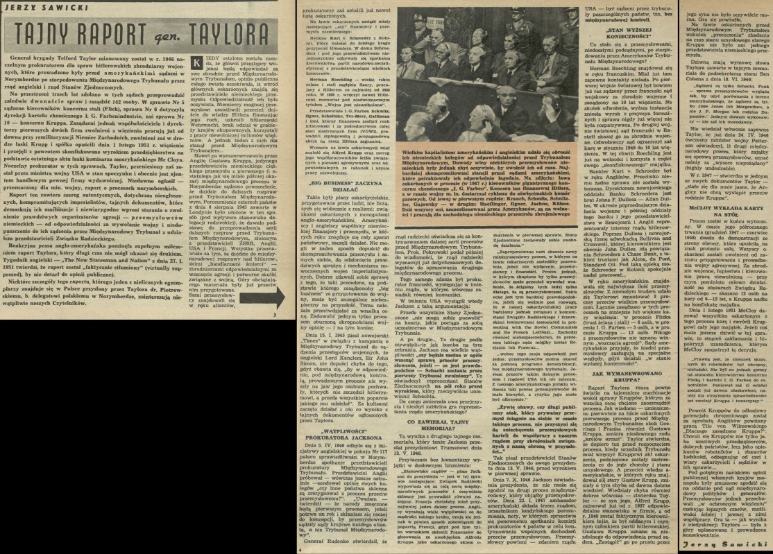 Archiwum / Artykuł nr 308 (10/1951) 18/22 Podziel się Tytuł Tajny raport gen. Taylora Autor Jerzy Sawicki Kategoria Artykuł Artykuł z numeru 308 (10/1951) Data wydania 4 marca 1951 Tagi Mac Cloy Krupp von Bohlen und Halbach zbrodniarze hitlerowscy